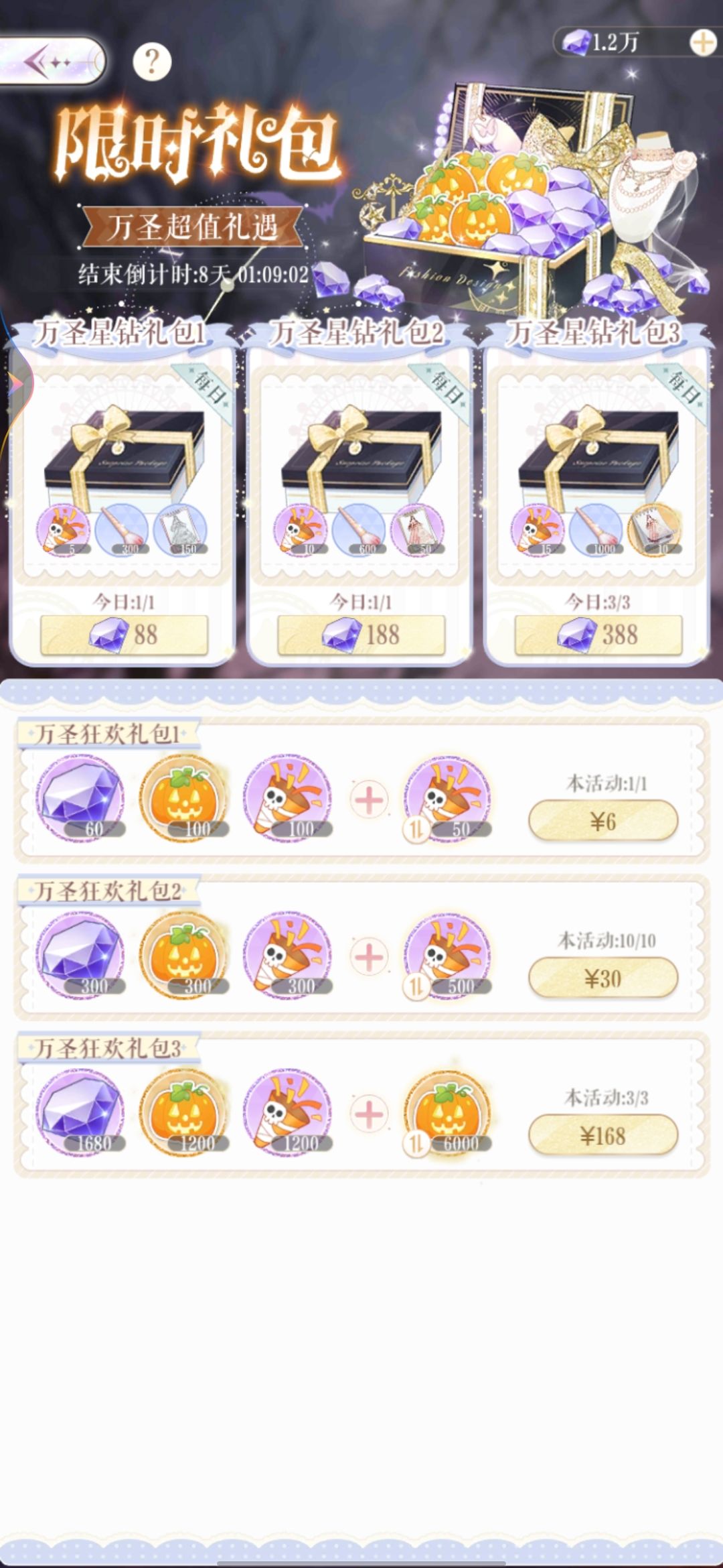 168r-1680砖石+1200南瓜灯+1200万圣礼炮+6000南瓜灯,活动限购3