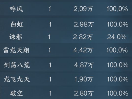 最后也只剩下“吟风”“白虹”“诛邪”这三个技能用来打稳定打输出,伤害占比也较为稳定。
