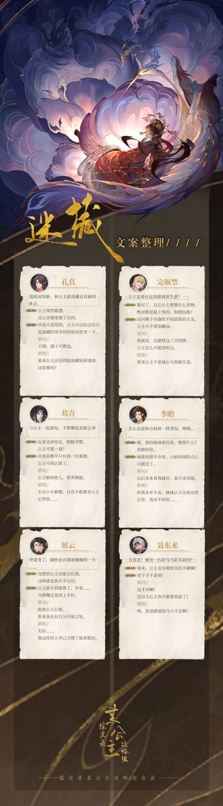 本次整理除进入捉迷藏后名士说的第一句话,还收集了猜对、猜错一次再猜对、两次都猜错的情况下名士的反应。捉迷藏速查攻略可以点击主页查看哦~
