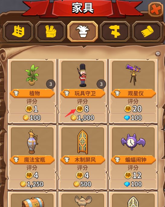 家具评分主要需要提升店铺中的家具等级,可通过购买家具装饰店铺,升级店铺家具等级这两种方法来提升家具评分。Tips:提升这两样的前提是我们要有充足的金币哟~