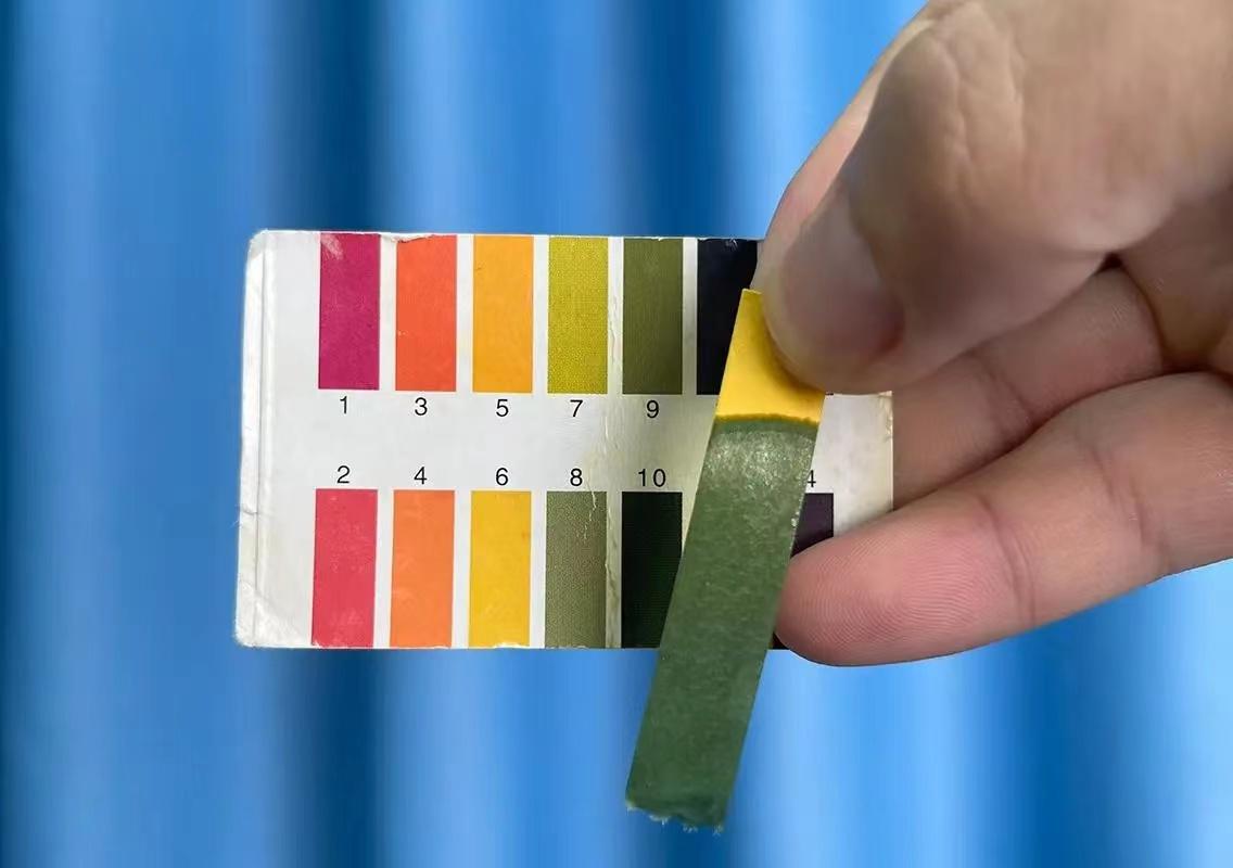 PH值测试,PH值9到10之间,比较强的碱性配方,并不亲肤。