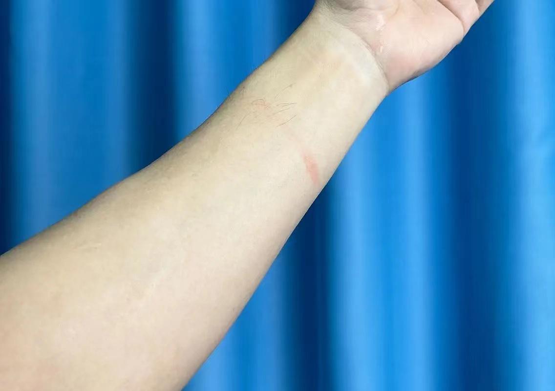 再看看对彩妆的清洗测试,手臂内侧涂上彩妆,十分钟后,洗面奶搓出泡沫,揉搓清洗彩妆,最后用清水冲洗干净,可以看到,口红轻微残留,其他彩妆基本可以清洗干净,综合来看,清洁力不错。