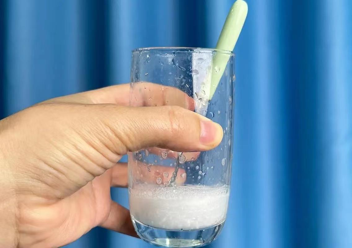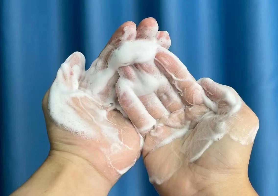 加水徒手揉搓,容易起泡,泡沫绵密,不属于非常高泡的类型。