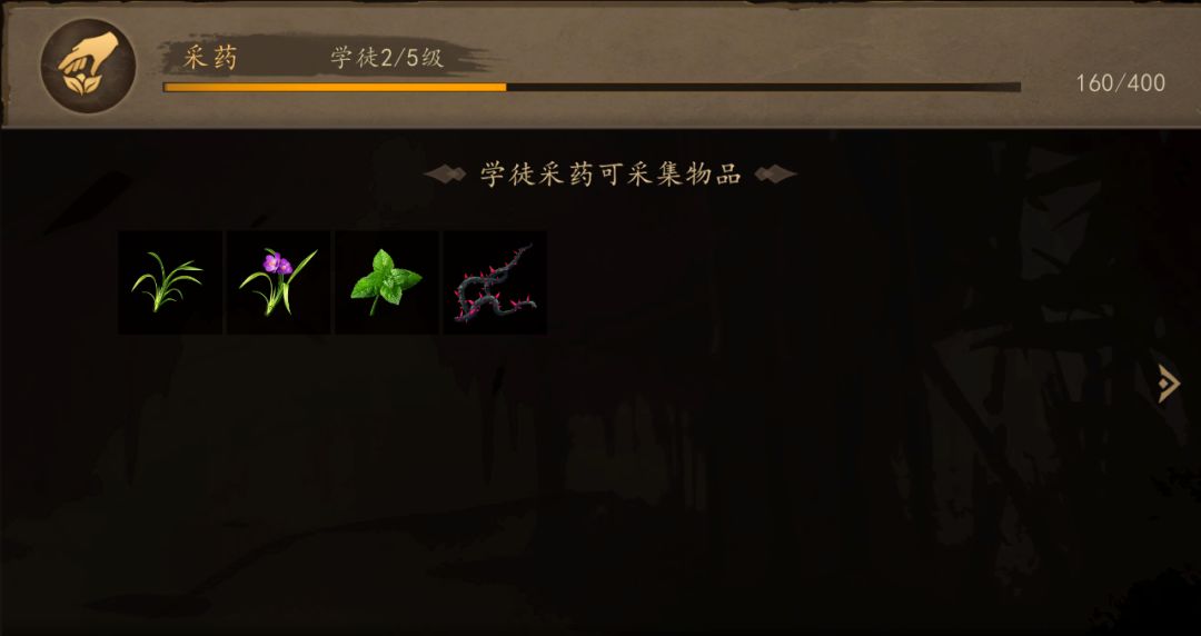 伴随着采药熟练的提升,采药等级也会随之提升,目前游戏当中采药划分为:学徒、熟手、良匠三个等级,熟练度等级越高可采取更好药材。