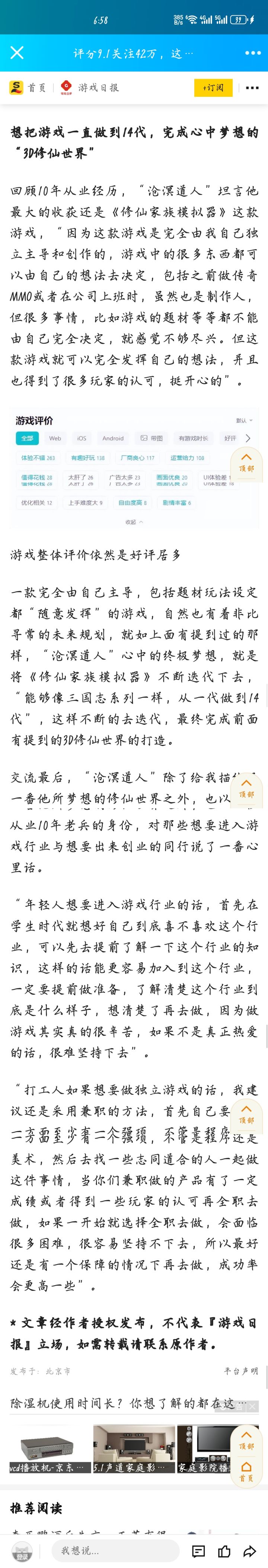 对我个人而言,我也是希望能做出一款我心目中完美的修仙游戏,一开始接触到修仙家族模拟器的时候其实已经隐隐约约让我感受到了,这是鬼谷八荒和了不起的修仙模拟器没有带给我的感觉,其他的pc端还没玩过,因为不会给我这种感觉。我相信苍冥道人也是类似的想法,要不然我也不会从一开始玩这个游戏到现在。