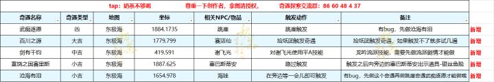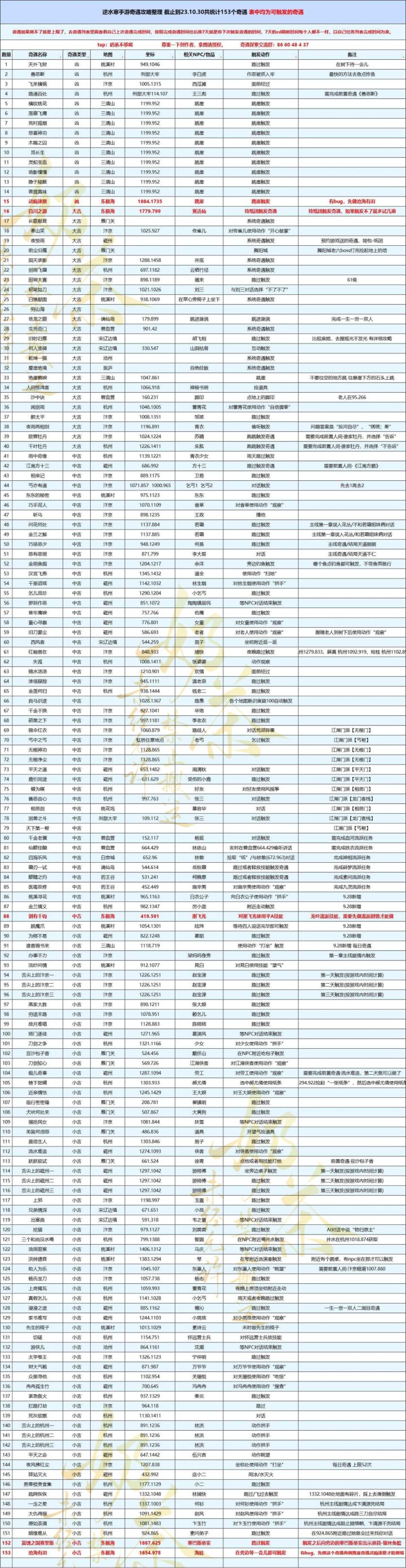 奇遇攻略整理大全 截至10.30共统计153个奇遇