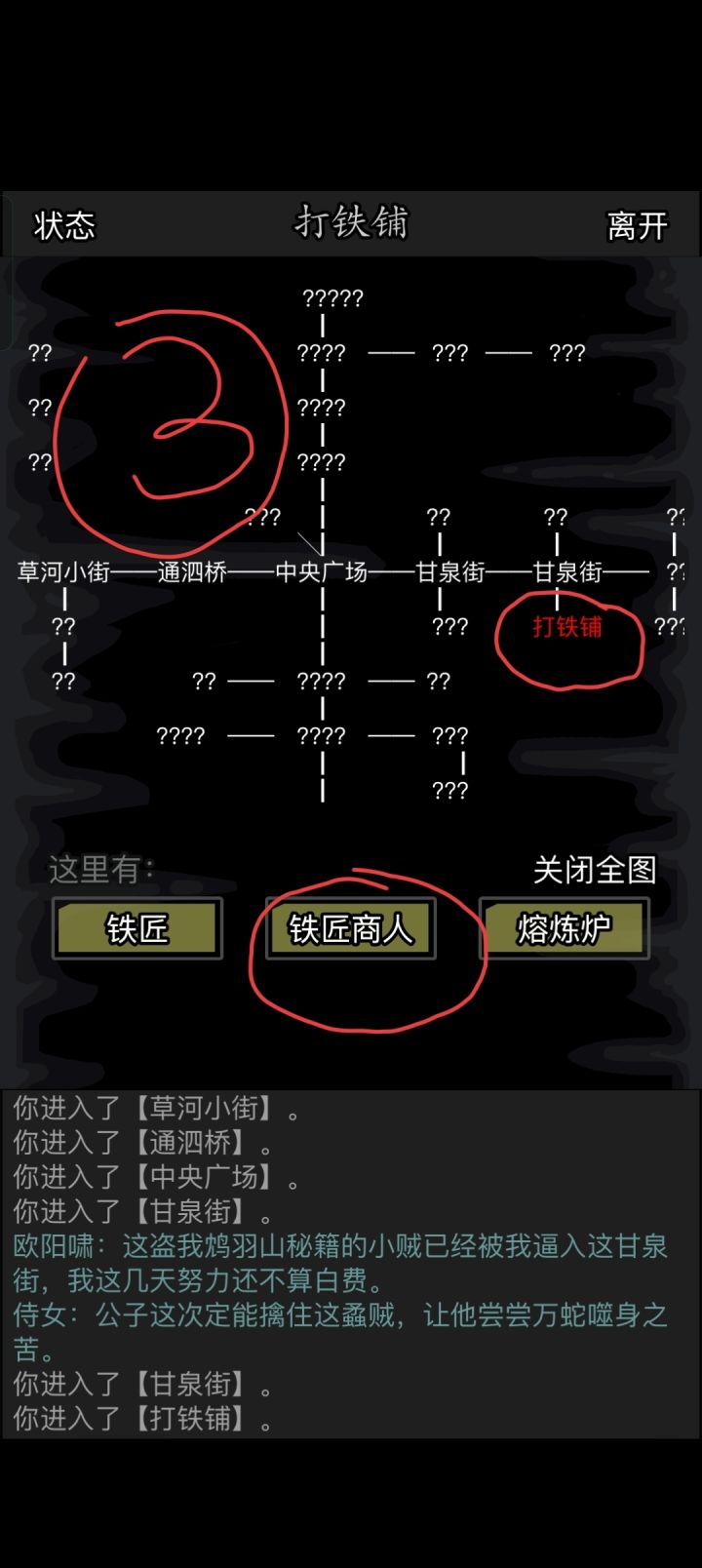 方法:扬州城→打铁铺→中间的铁匠商人