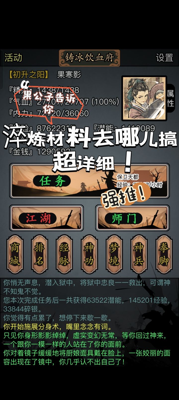 今天有位少侠找到我,要求我做一期淬炼材料的获取方式,说要提供给新人,既然是给新人做这期,那本公子做的要十分细致才行。好,废话不多说,咱们正式开始。淬炼材料去哪儿搞?超详细介绍加个人理解