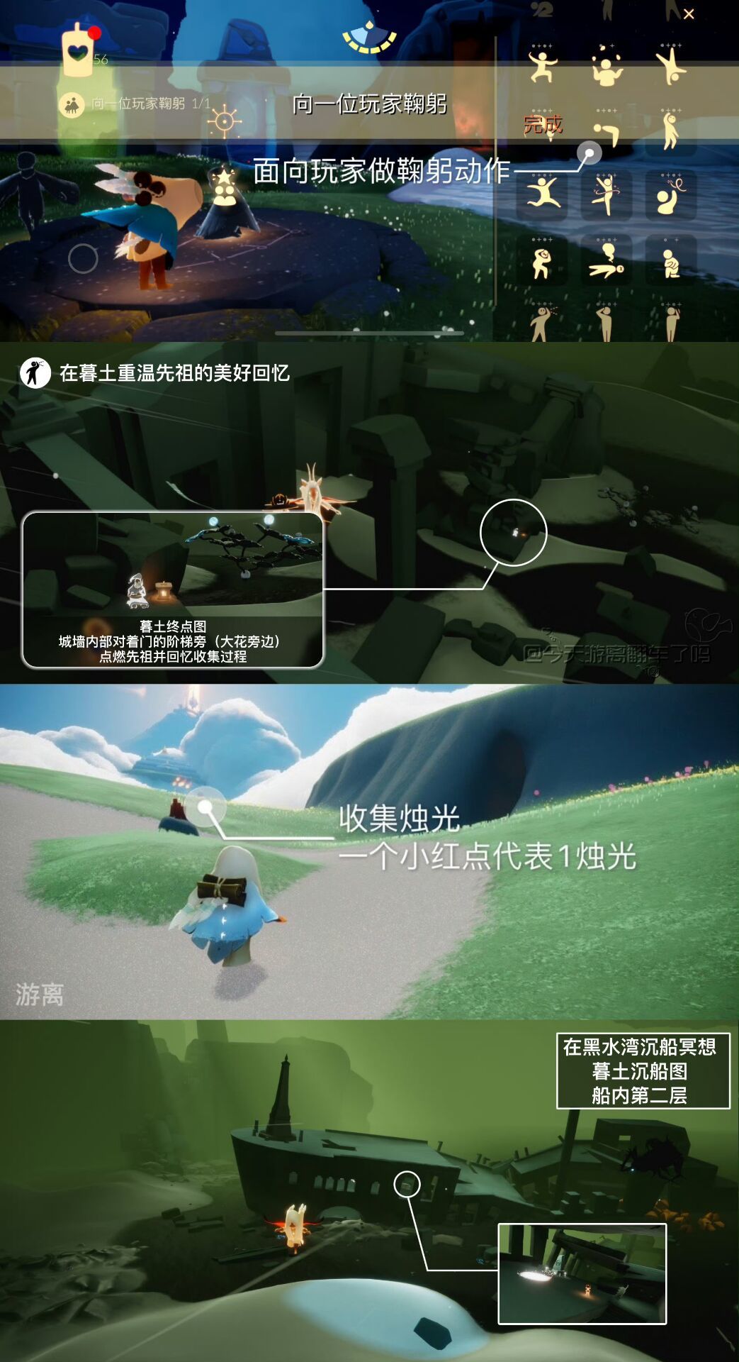 《光遇》游戏中每天的每日任务及大蜡烛的位置都不相同,玩家完成每日任务及收集大蜡烛都可以得到丰厚的兑换奖励,奖励可以用于兑换各种动作及道具,不过很多小伙伴不知道每日任务怎么做,又懒得自己去找大蜡烛的位置,我们汇总了每日任务的完成攻略以及蜡烛位置,一起来看看吧!