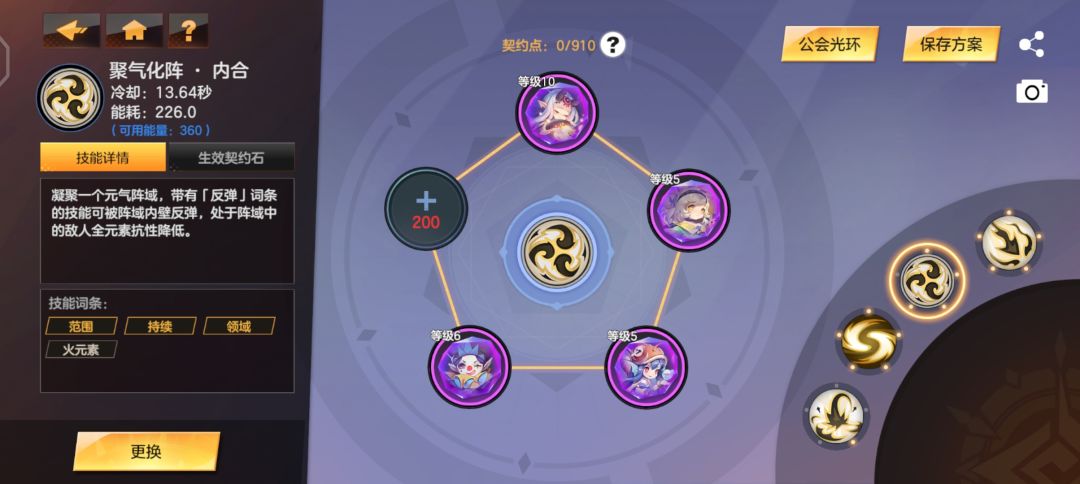 三技能聚气化阵-【深眠守护】【节能守护】【广域扩散】【时间扭曲】有多余契约点可以再装个【守护触发】加双抗