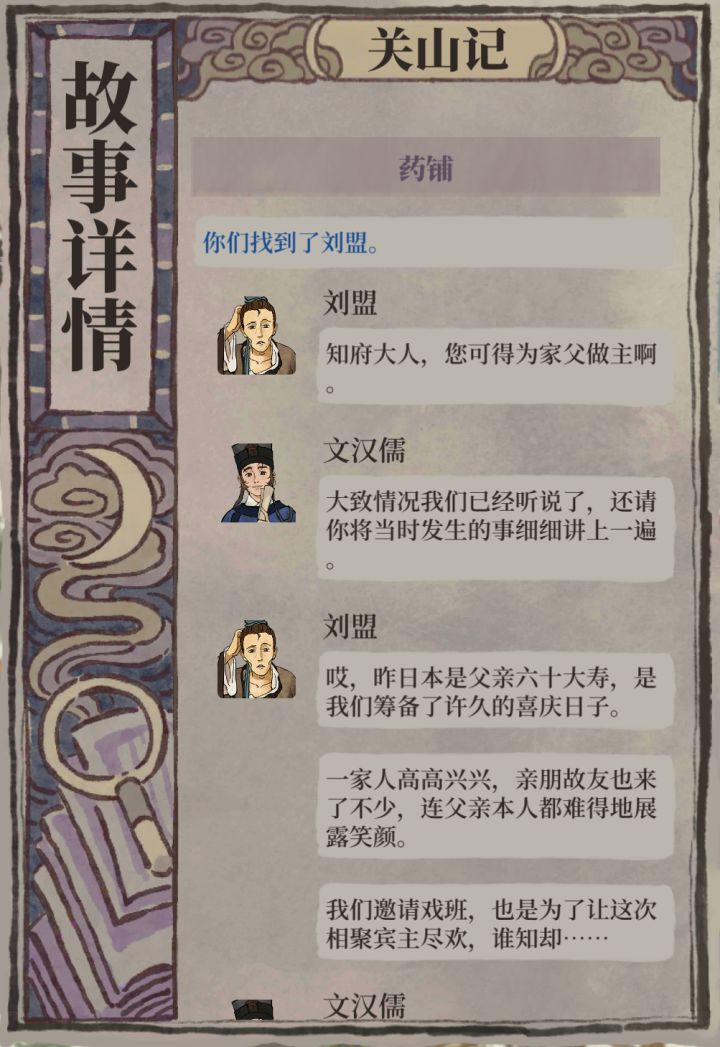 一、药铺(不限),调查对象~刘盟