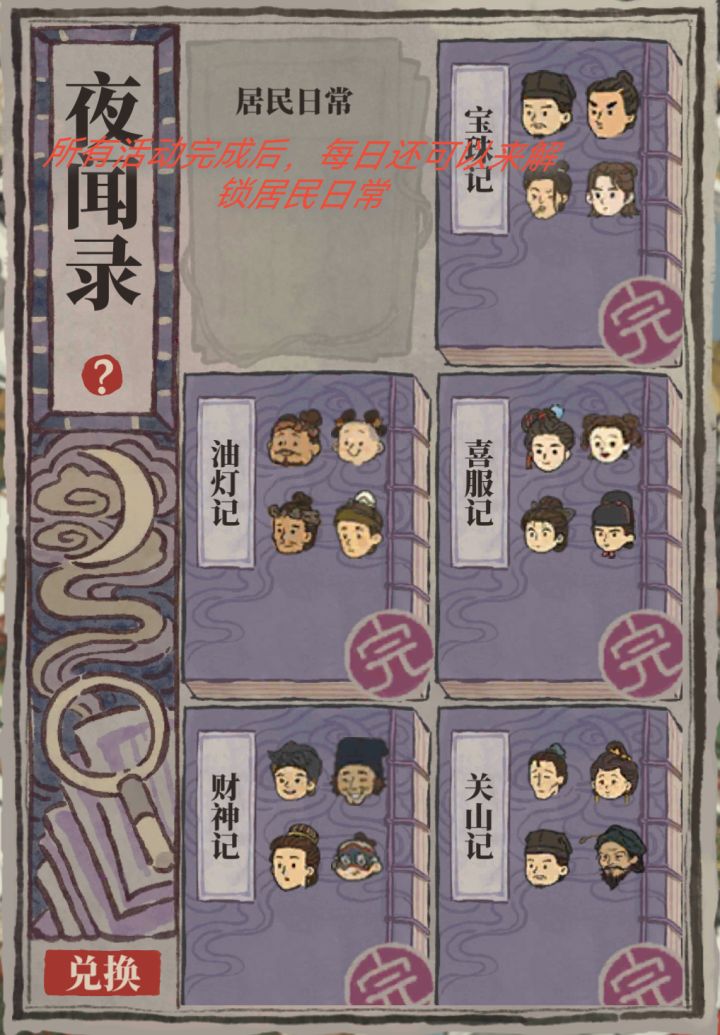 注意:所有事件调查完了还可以每日点居民日常获取夜闻笔记。