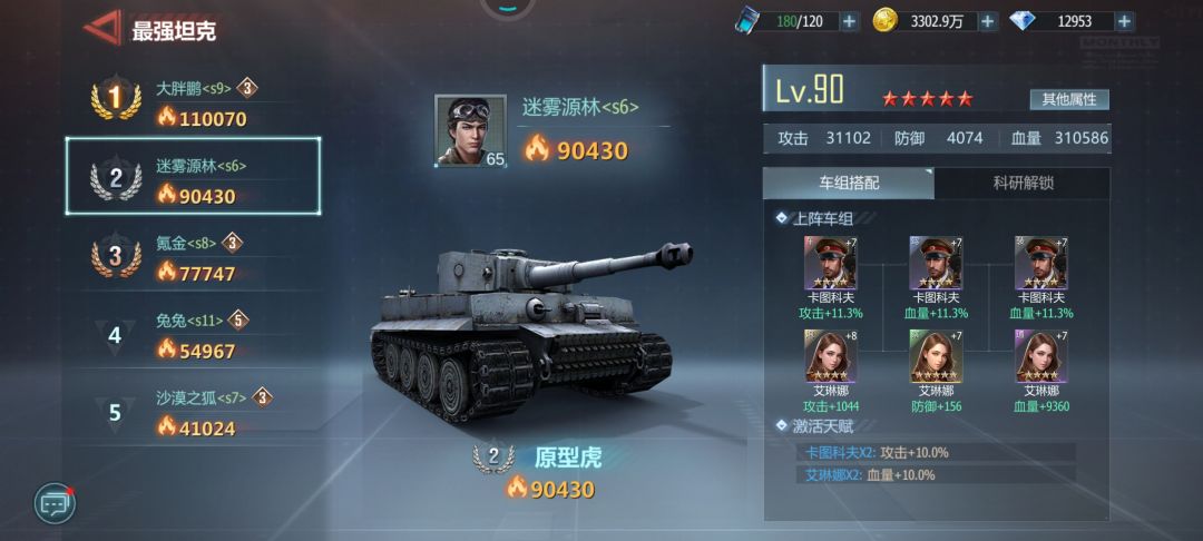 橙色虎王坦克还要吃掉虎式坦克,我们就会少掉一个强力的坦克,远远划不来。虎式坦克在紫色品质里面也是靠前的存在。输出也是很可观的。一个蓝色坦克升到满星只需要20多万升星经验,血量就能达到30多万。橙色虎王远远达到不了,因为没有碎片去升星。还要吃掉蓝色和紫色坦克划不来,一个橙色坦克可以养活两到三个蓝色坦克。虎王坦克他的主动技能50%概率的第二段技能很难打的出来。升到4星,果断丢弃,它带上这个坎宁安车组,再加上416的效果。这个车组是叠加不起来的。概率只有20%。试了好多次,反正很难打出来,应该叠加不了。一开局不选择推荐升级这个,直接升级送的那一个橙,至少前期不会缺战力。
