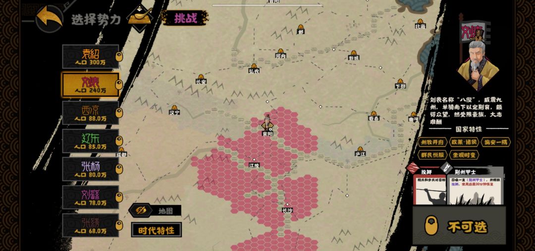 刘表拥有还算不错的初始战斗力和军规,关键在于初始提供了五个士子,这意味着前期应该不会被科技卡住政策施行,算是很有意思的开局了。