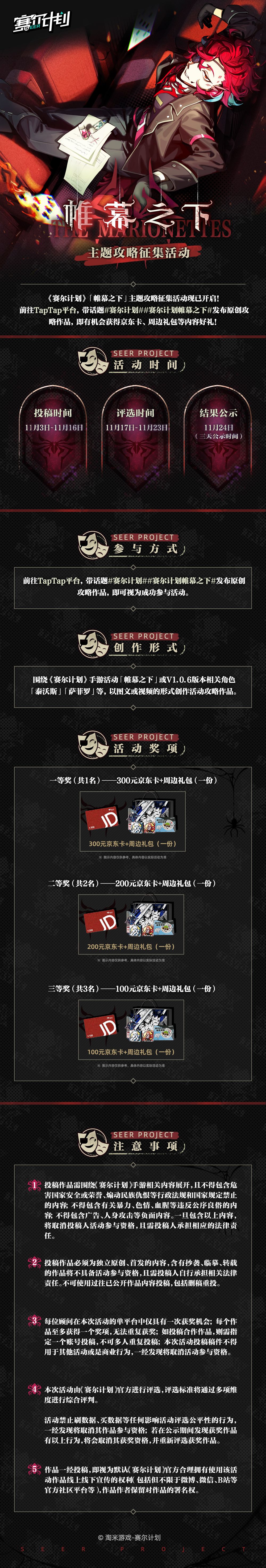 《赛尔计划》「帷幕之下」主题攻略征集活动现已开启!前往TapTap平台,带话题#赛尔计划##赛尔计划帷幕之下#发布原创攻略作品,即有机会获得京东卡、周边礼包等内容好礼!