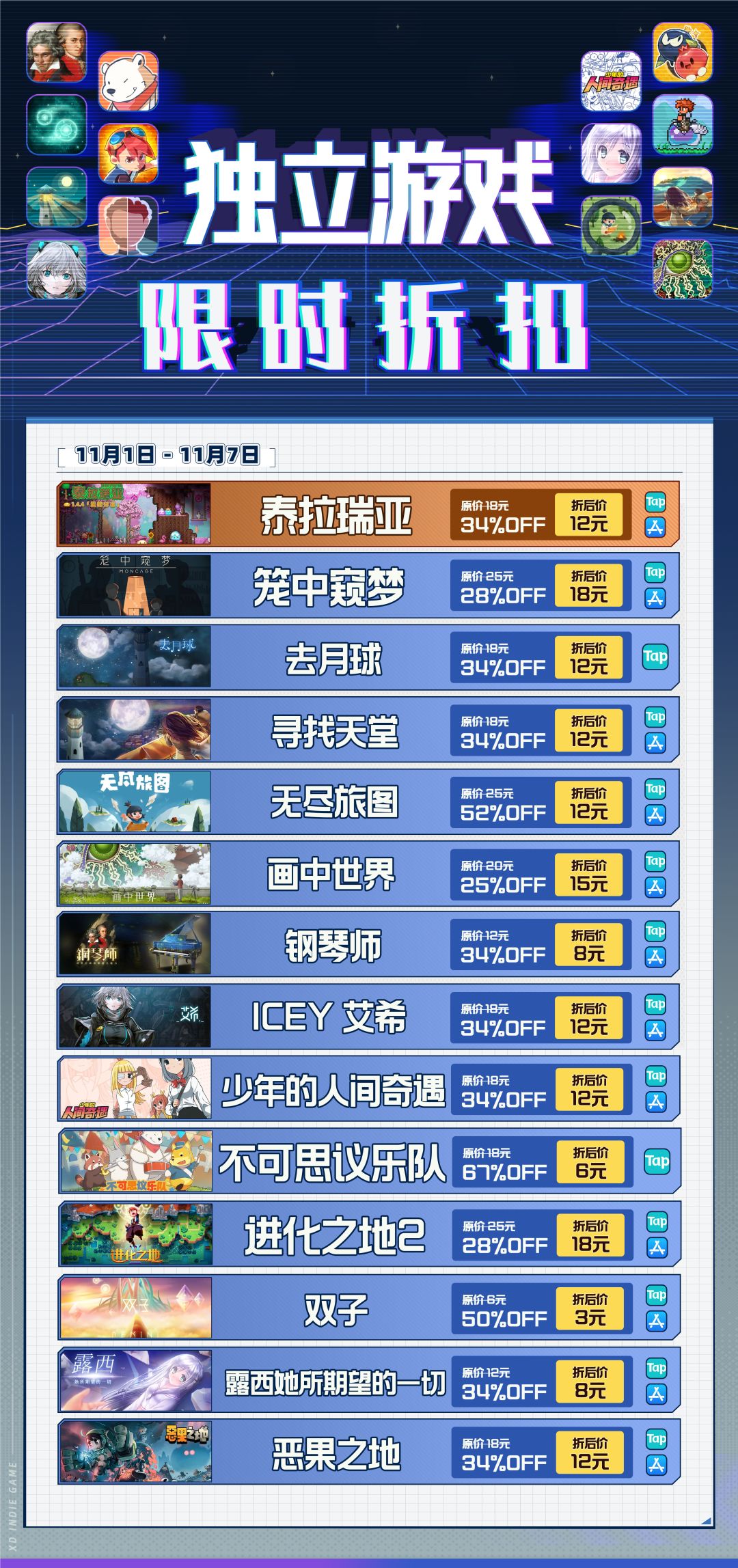 🎁XD独立游戏限时折扣:11月1日-11月7日
