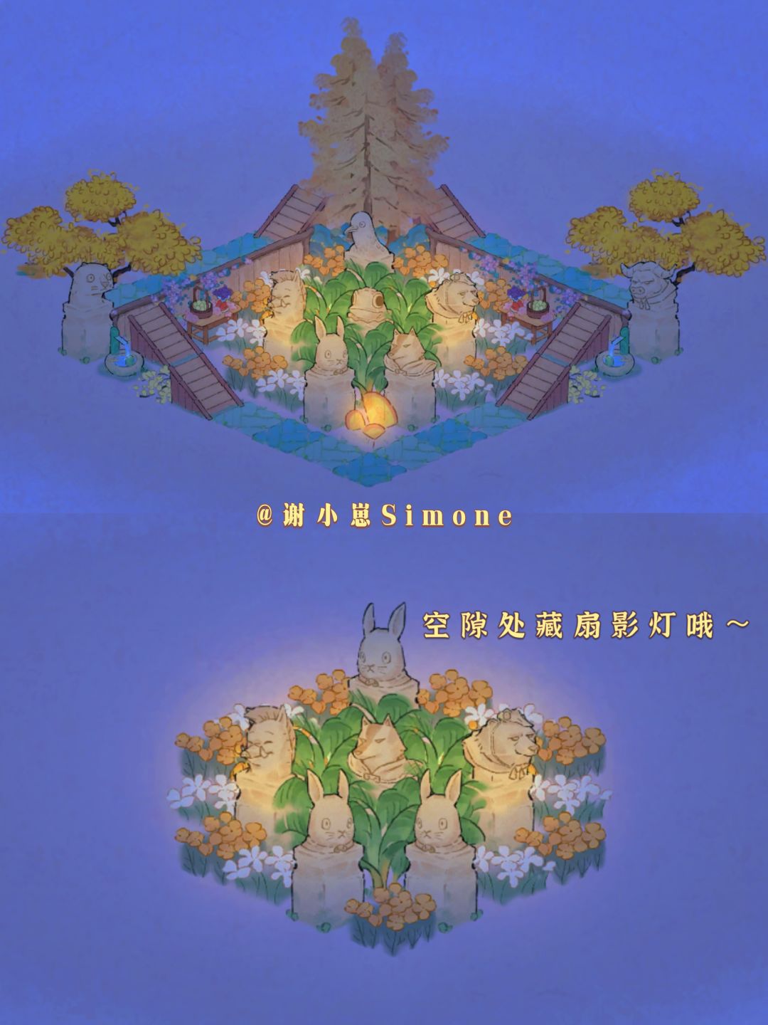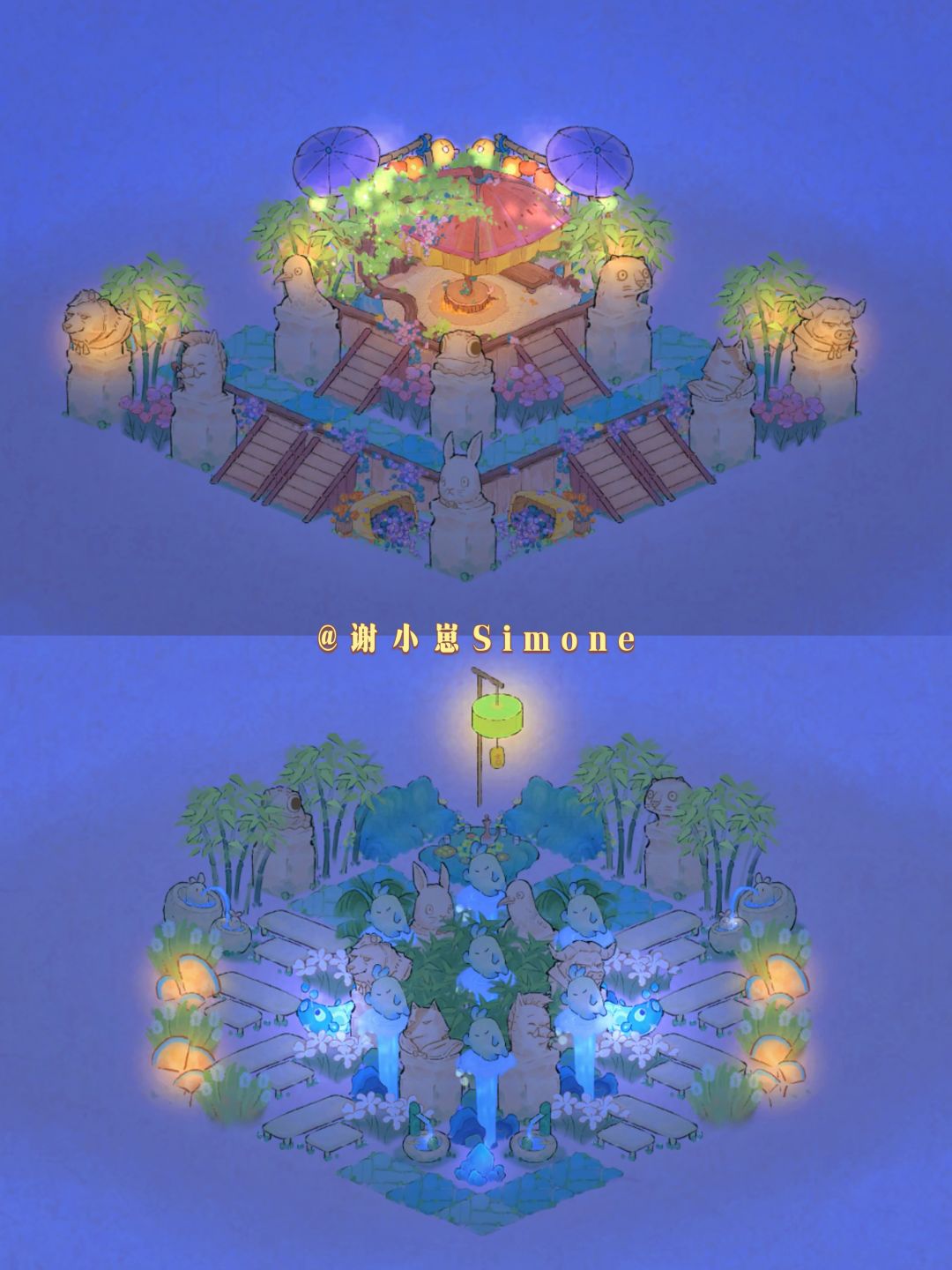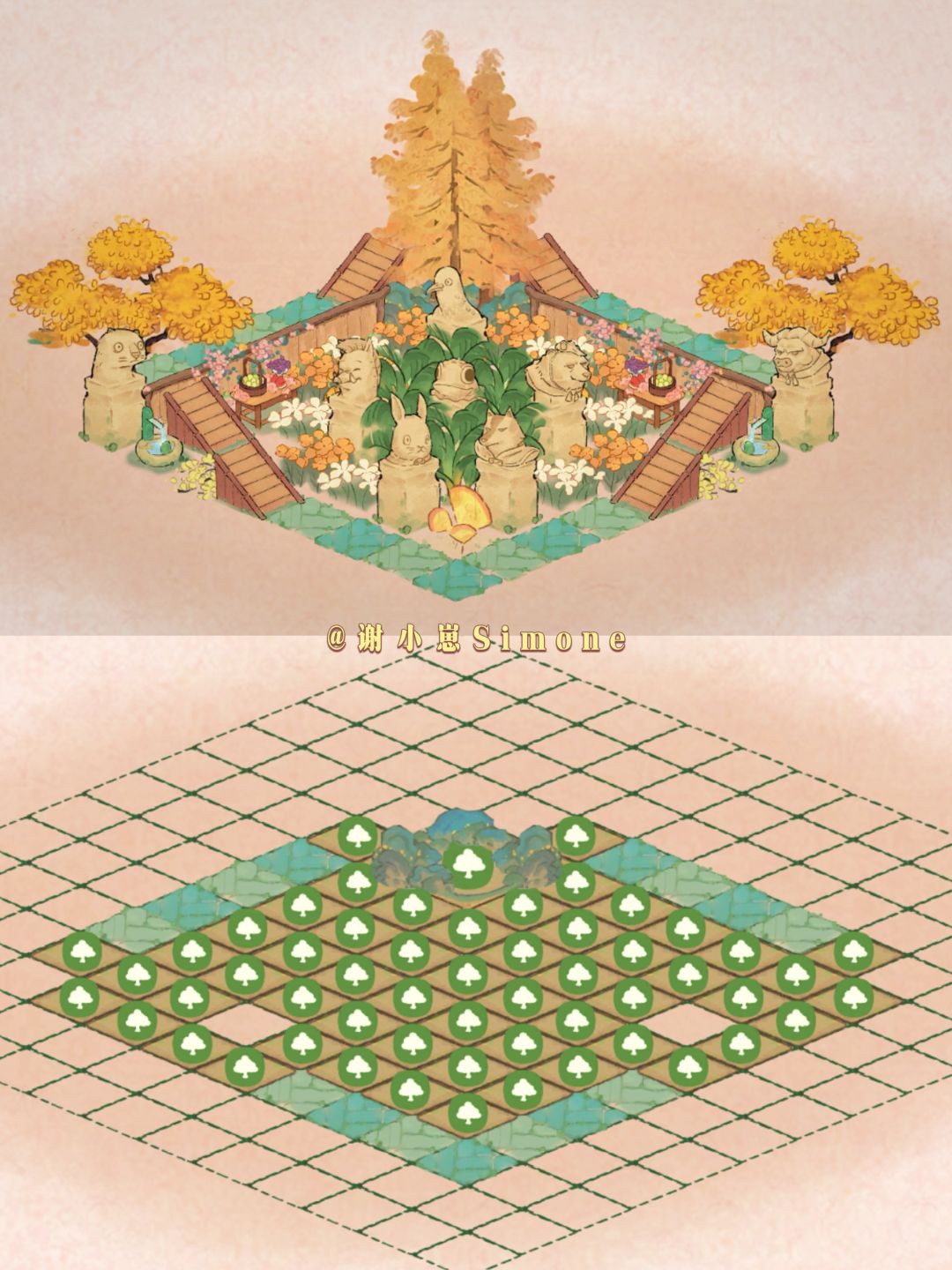 中国奇谭联名的石柱子建筑返场啦,刚好前几天有小伙伴想要拴马桩的布局,所以出了春夏秋三个季节的石柱子造景。结合了本次新创物「弈萝思棋」和山遇中的一些小单品。