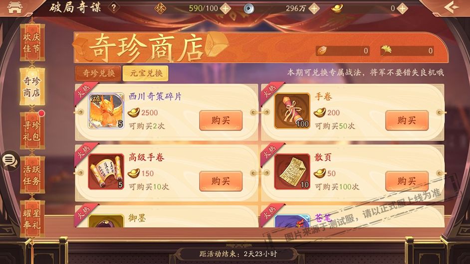 ❀西川奇策碎片、高级手卷、苍笔、紫金精研书碎片等限量元宝贩售