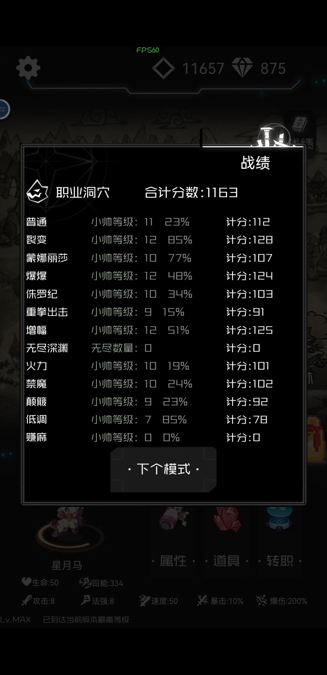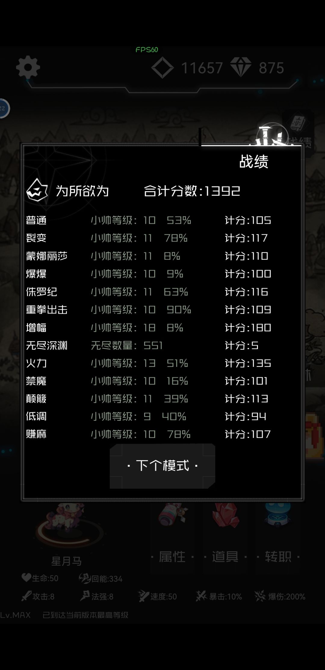 朦胧小屋实在一头雾水。难道把把都要运气好?老浅+暴躁一击+死亡之花+反击滚石+王之心?反正最快过图就是暴躁一击。血量够暴躁一下能过三个图。