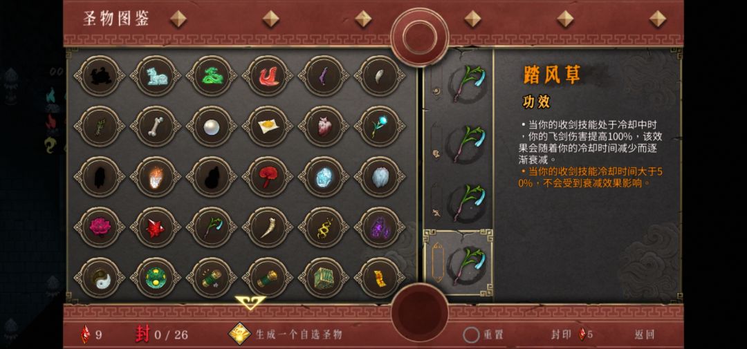 4号位:必拿踏风草(收剑技能CD时飞剑伤害提高100%,建议开局拿下)