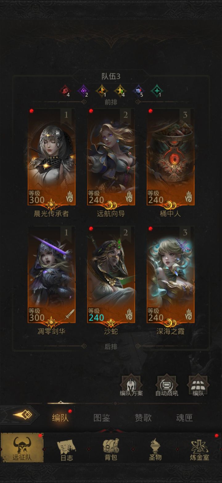 阵容排列如图,凋零和晨光互吼,深海之霞和桶中人开局吼一次。