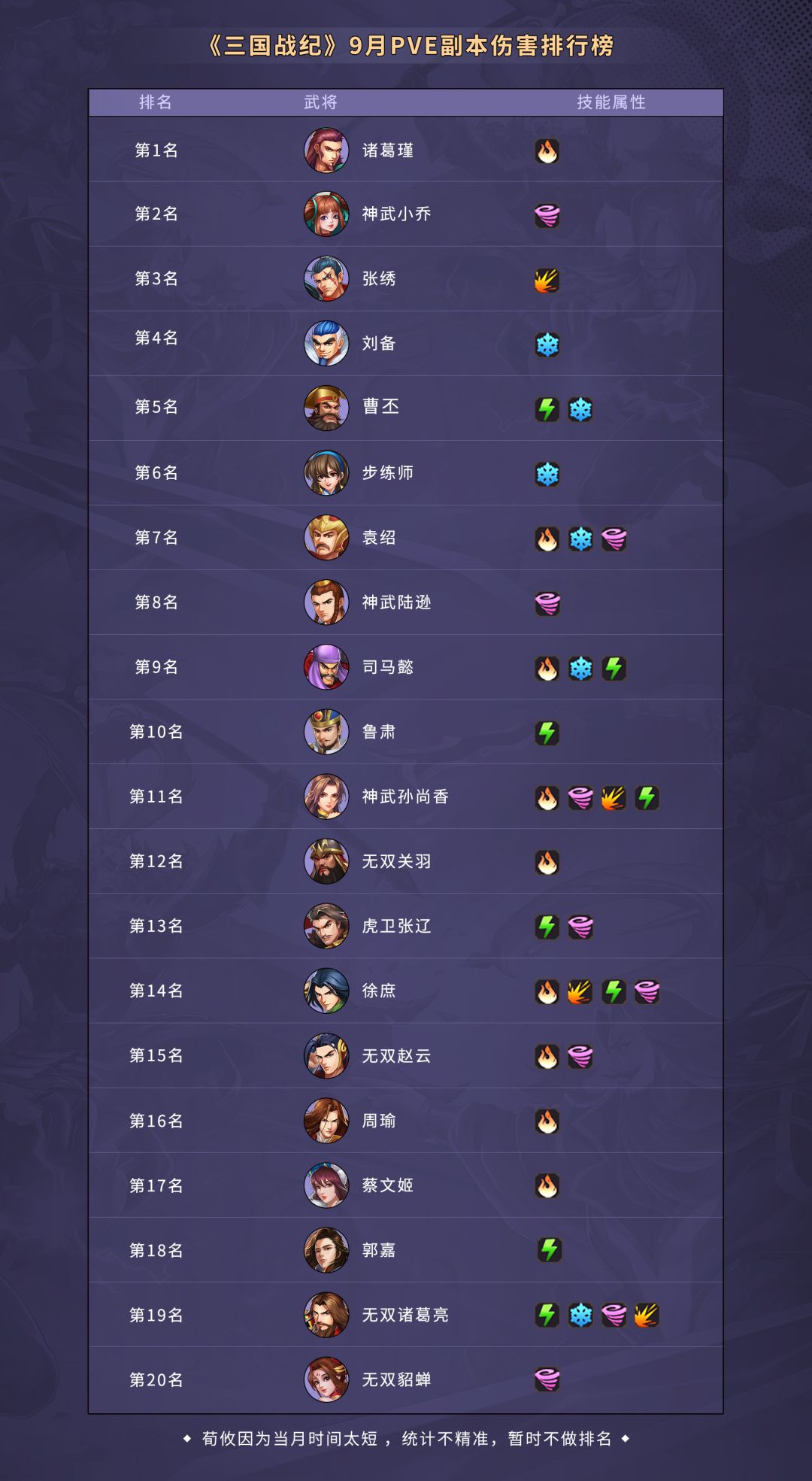 《三国战纪》9月PVE副本排行榜
