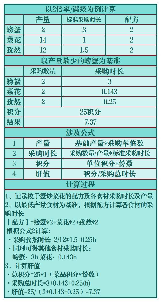 整理得图2,其他菜品肝值(性价比)如图3。*计算以2倍率/红帽子为例,不满足该条件的小伙伴可根据该步骤自行计算。以上仅供参考。