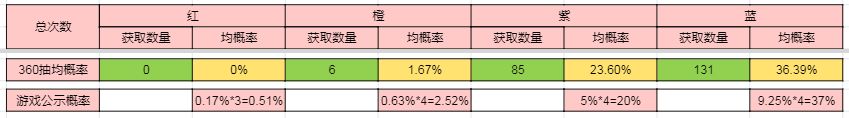 总体来讲:由于抽取基数太小,数据上算不得精准,没有出红只能说运气问题,我一个朋友他20次就出了红,只能骂他狗笔~~