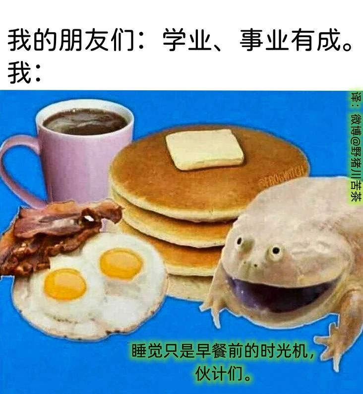 沙雕搞笑梗图:睡觉只是通向早餐的时光机,伙计们!