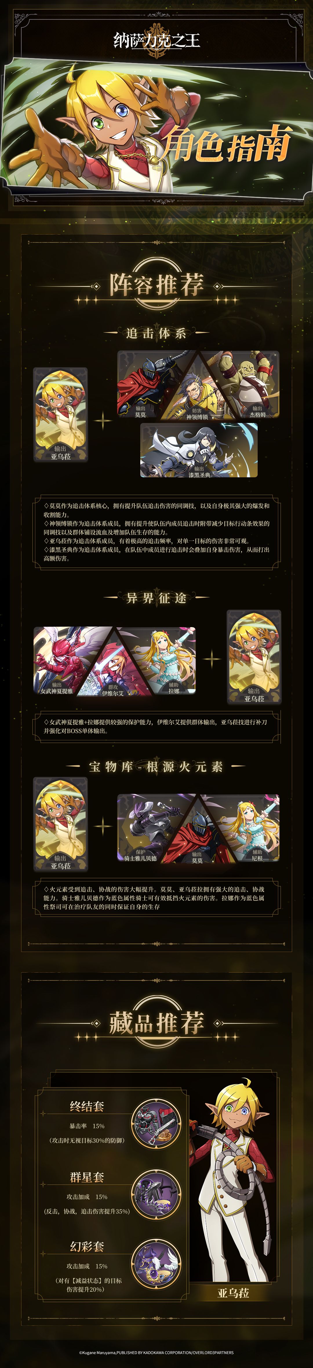 今天给大家介绍的是OVERLORD正版授权手游《纳萨力克之王》将会出现的角色——亚乌菈, 更多角色等待解锁中!大家敬请期待~