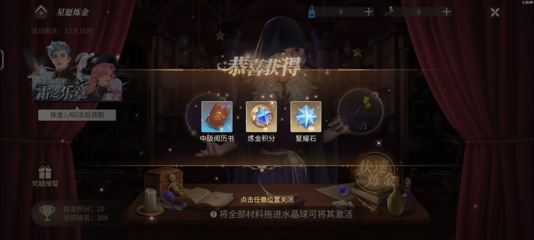 风花药水可在星愿炼金合成奖励,每次合成需要金色郁金香和风花药水即可合成。(每次抽取10积分和2星耀石)