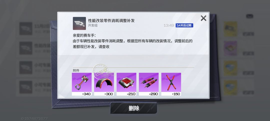 车手们记得上号去邮箱看看零件到货了没~不多说了,小可要继续为下一辆新车攒材料啦~
