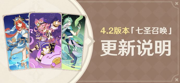 旅行者好呀,4.2版本更新后,「七圣召唤」玩法将新增角色牌「妮露」、「多莉」、「白术」和对应天赋牌,以及五张新的行动牌,将上线新功能牌组分享码,加速对局,还有部分卡牌平衡性调整,一起来看看吧~