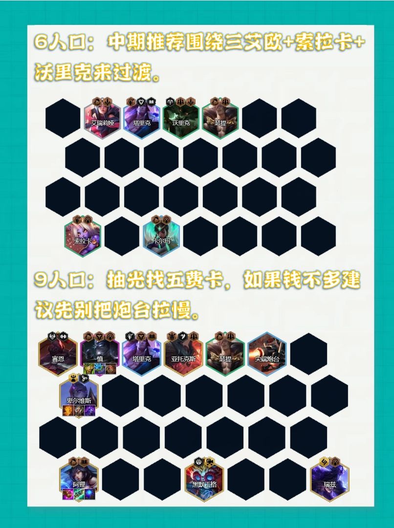中期推荐围绕三艾欧+索拉卡+沃里克来过渡。