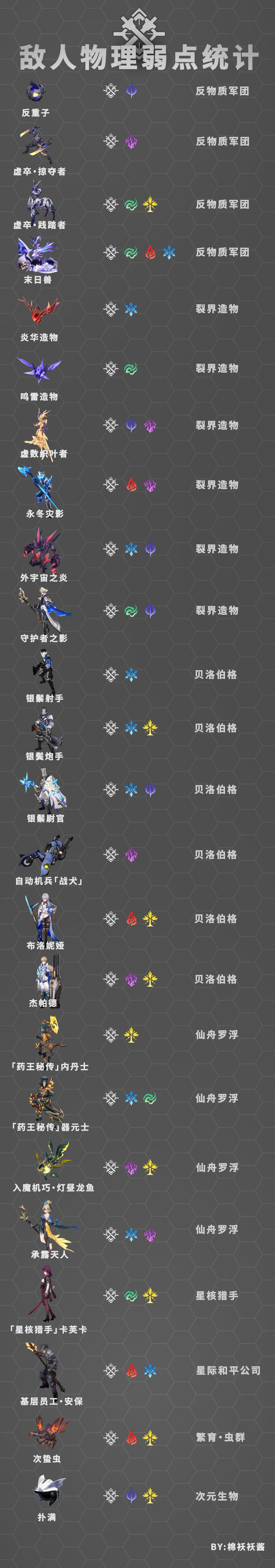 目前已知拥有物理属性弱点的敌人共计24种: