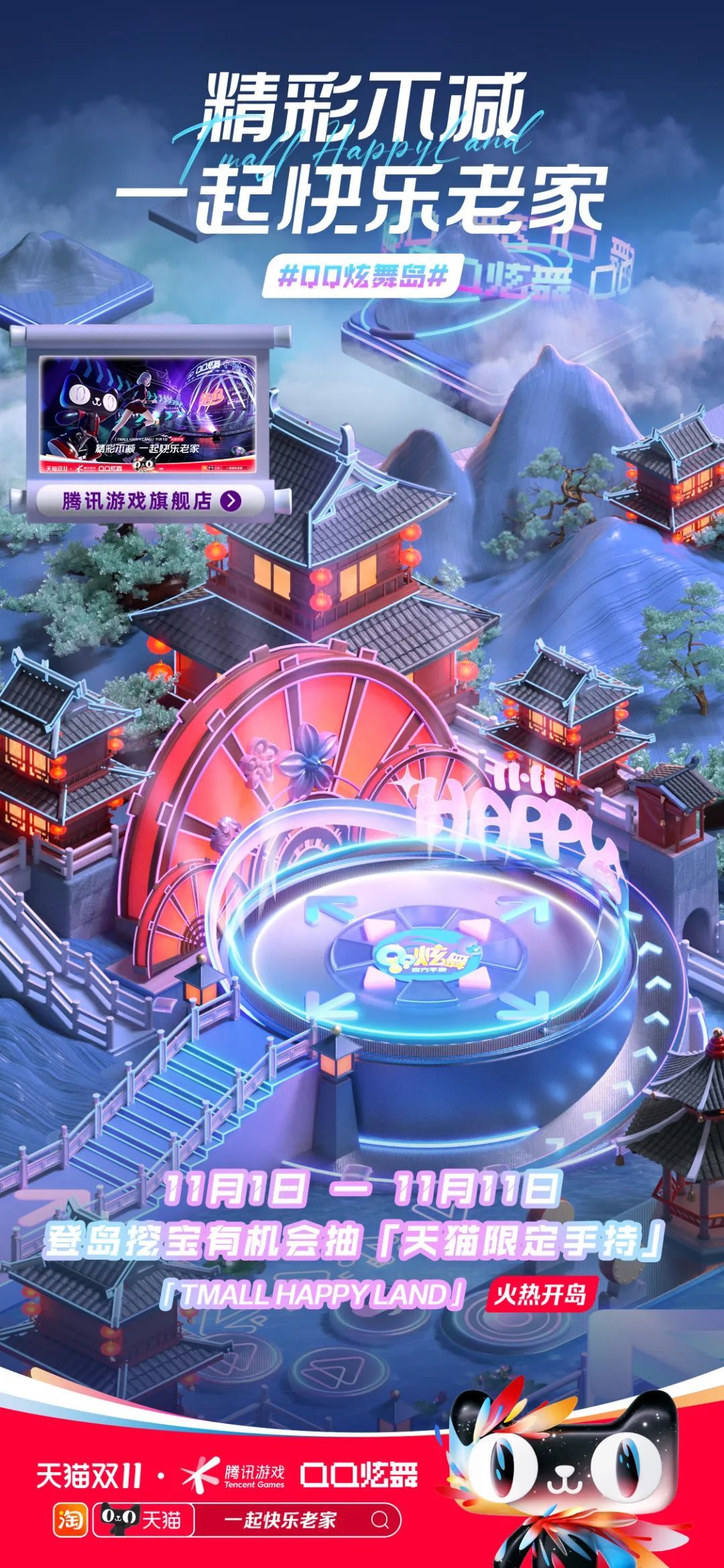 11月1日起,上淘宝搜“一起快乐老家”,每天登岛挖宝100%有奖,还能解锁QQ炫舞手游专属的惊喜福利!