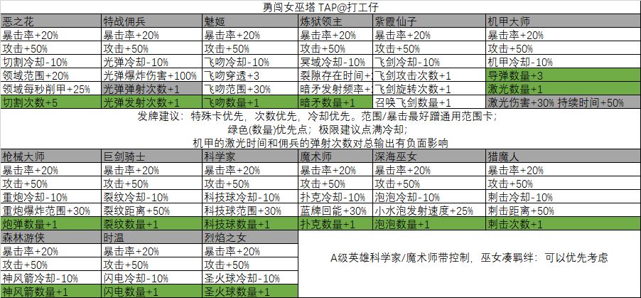 部分打问号的空格是在局中没遇到过这个技能卡,因此留问号
