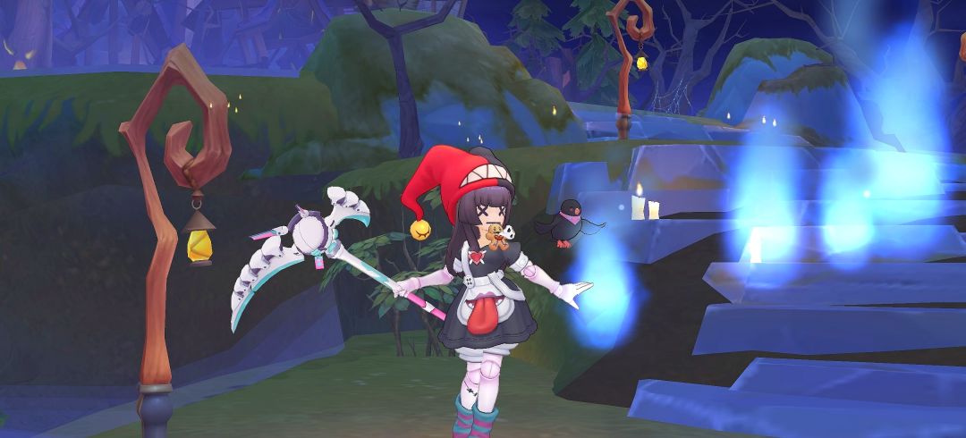 而我选择了一红一黑的帽子,代表了生和死。手持一把镰刀,收割无限生命(平时不用时挂在背后)。面部,嘴部,衣服选择了比较可爱的搞怪装扮。尾部是乌鸦,乌鸦被称为奥丁(北欧主神)的使者,与死亡、启示和神秘的知识有关。在一些文化中,乌鸦被认为是灵魂的导引者,可以将死者的灵魂带到另一个世界。