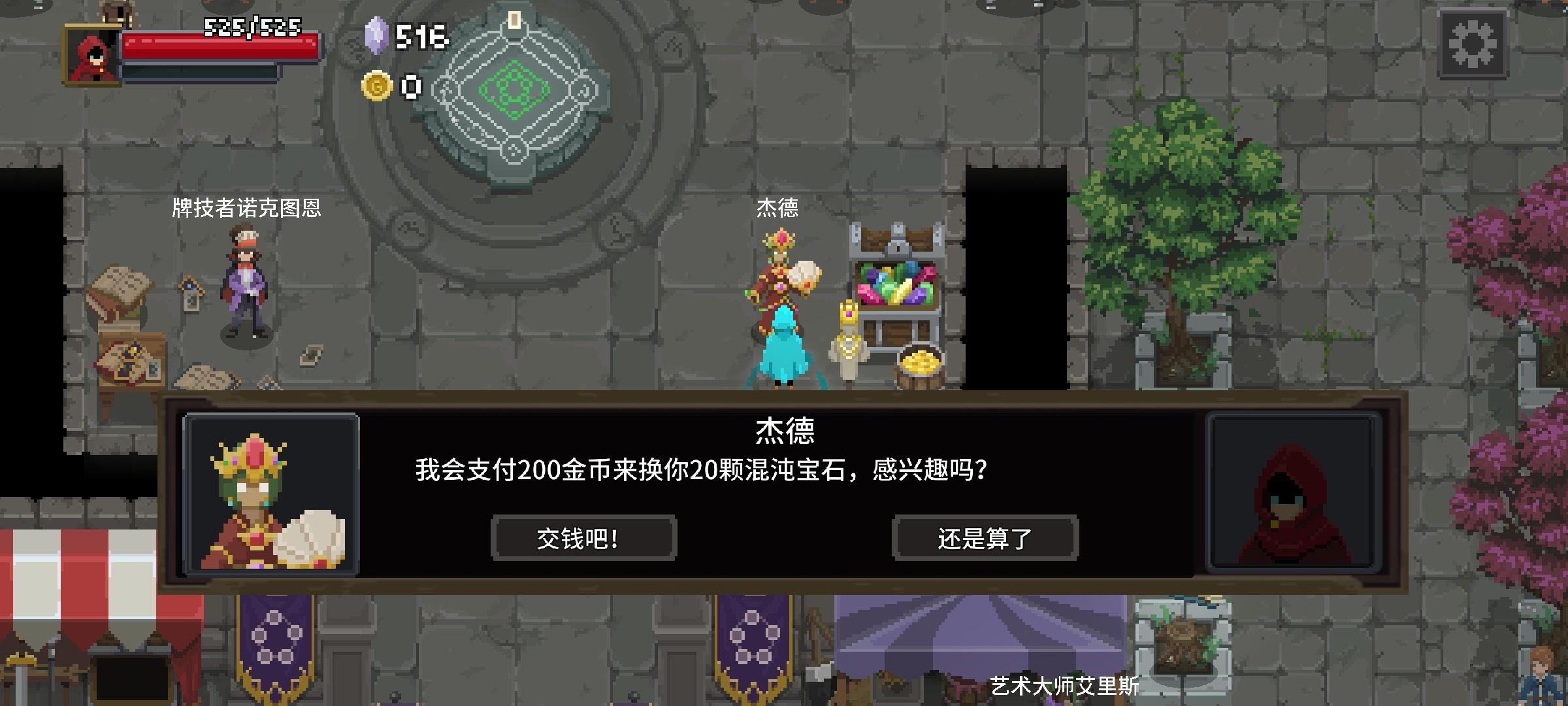 投稿给一起玩的新手参考。首先出门就去杰德这换200金币,很划算,圣物早买早享受,出门可带护身符加伤害提高前期刷图速度。我这个核心是基础攻击加速,过图可以带召唤或者范围大点的技能。把带伤害字眼的圣物买上,再买暴击加血的圣物(基础攻击攻速提上很容易触发暴击,续航用),看到加血量上限的拿下(加容错率)!!最后穿上合适的斗篷法袍(最好带点暴击率和生命值的,建议就白送的taptap斗篷法袍),打boss就边边上放召唤物打消耗,等boss停下来就冲上去开加速突突打他。。。。注意!! ~~boss头上有个晕的圈圈注意看,一旦发现圈圈没在了就撤!继续到边边上开召唤物消耗。这个得多练练眼力劲 ,多打两把熟悉后就顺畅了。 后面圣物叠起来可提高容错率。