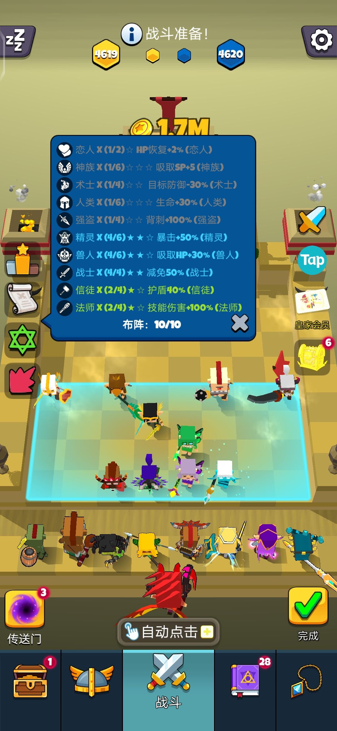 装备根据个人喜欢搭配,偶尔可以针对阵容去调整一两个英雄的装备,离谱王子,切后排就带背刺,扛龙就带闪避,加血的信徒可以通过带攻击力装备来提升血量。