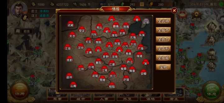 顺势而为成就要求两千次近战攻击非适应地形的敌军,如图二当我们随便开启一个存档将敌人逼在这个辽东角落里,这个图的特点是左边全是水域,我们可以把麾下大部分的武将移到这(100位左右武将),相信解锁完不朽以后都会有大量武将。