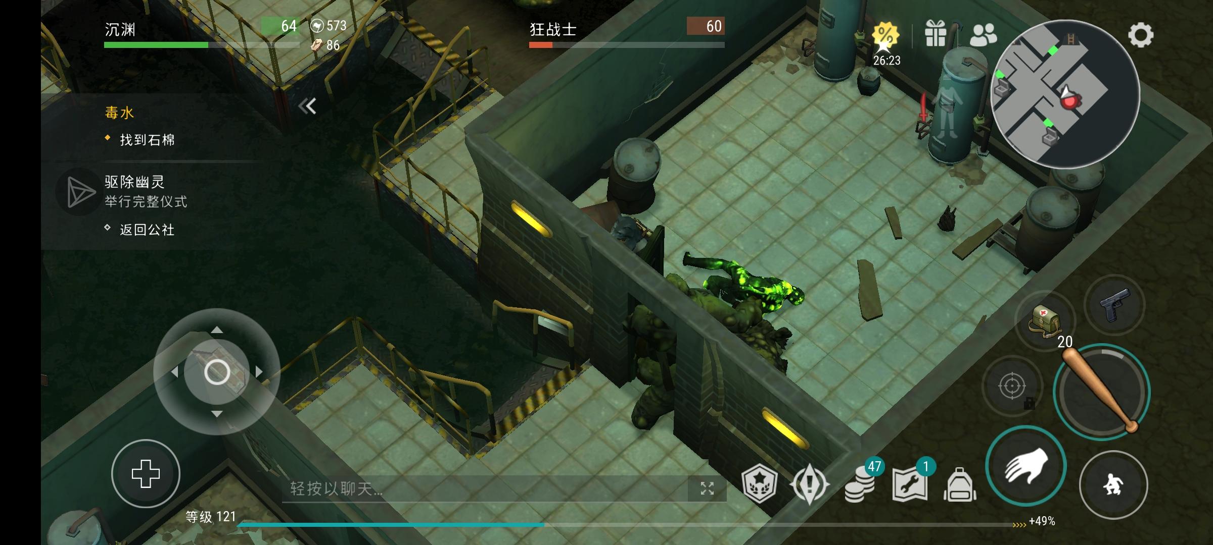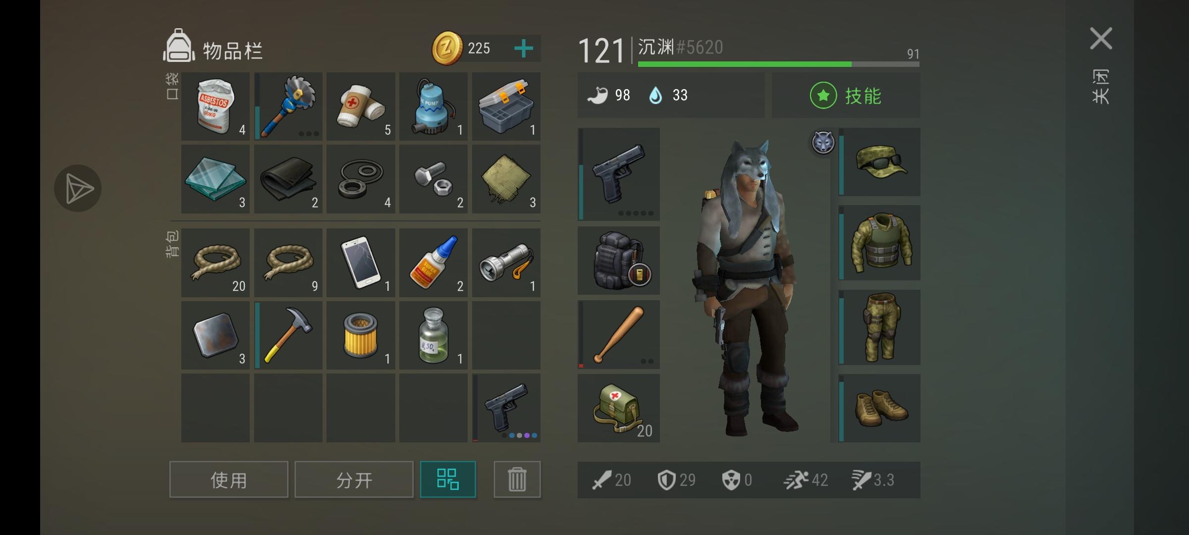 推荐一整套军装,两组绷带,大锯一把,砍刀一把,轻型卡墙武器两把。