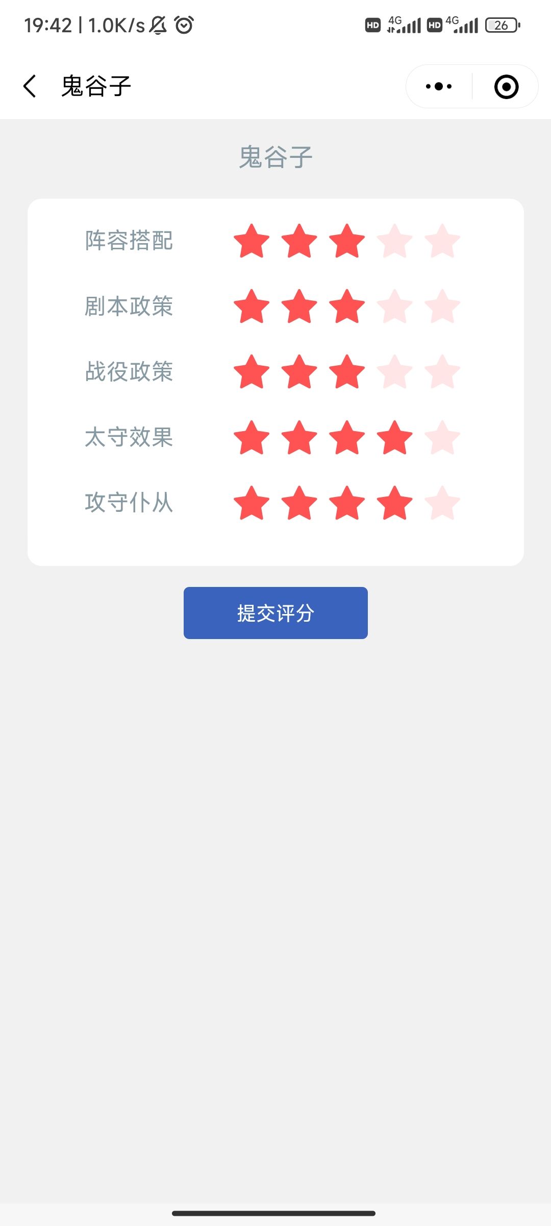 2.评分更新:考虑到无悔华夏名臣技能属性,技能效果后续可能会产生变动的情况,以及存在评分失误的情况。小程序支持玩家对自己提交的评分进行更新。