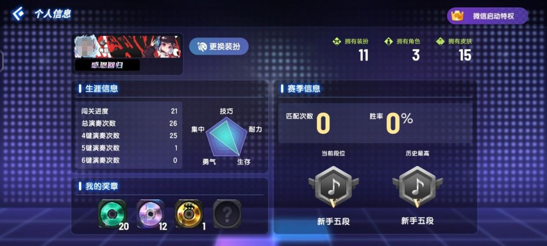 在排行榜中,演奏家们可以在屏幕右侧查看自己或者其他好友的“玩家信息”,每个赛季的战绩、个人生涯的数据都会在里面呈现,不知道届时有没有“五边形战士”诞生呢!