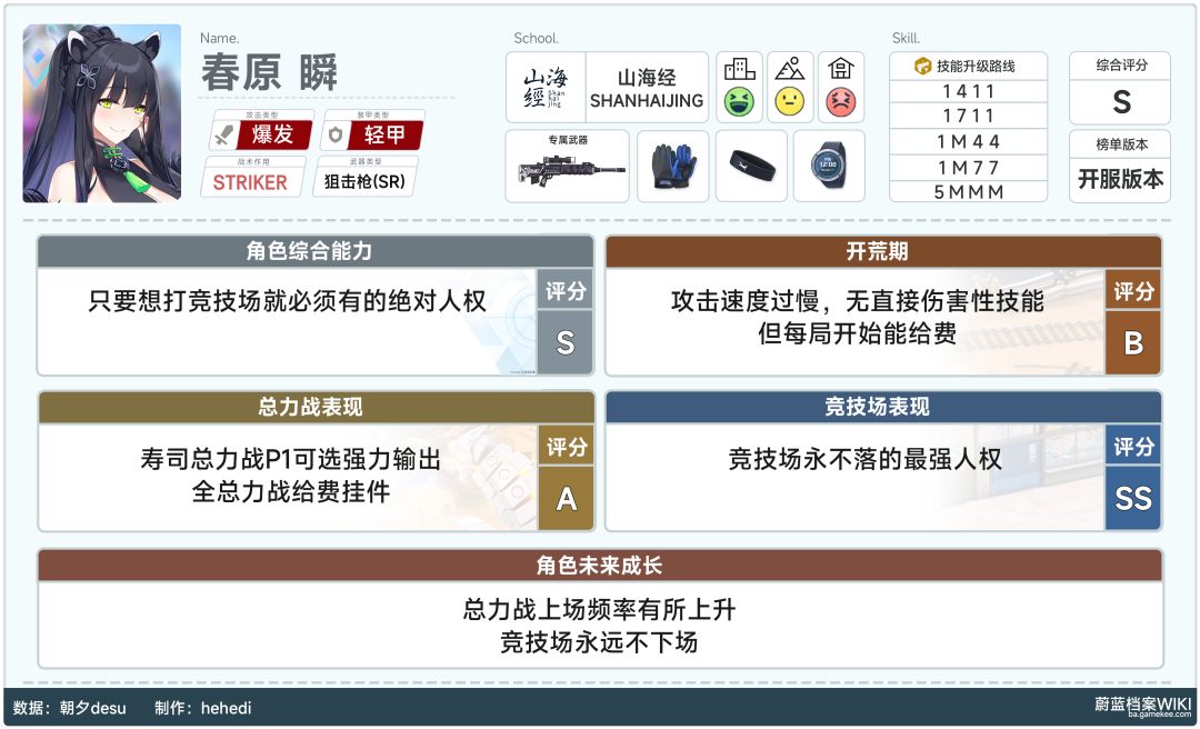 #个人想法:阿鲁也可以练但可以先等等,现阶段阿鲁高练的推荐度不高,而所需要的强势爆发也不少,鉴于大部分sensei的资源有些捉襟见肘,可以适当把一些资源分摊给有需要的爆发角,到后期专武(专武出了就可以考虑高练)爱用品出了再高练,现阶段推荐无脑技能顺序加点: