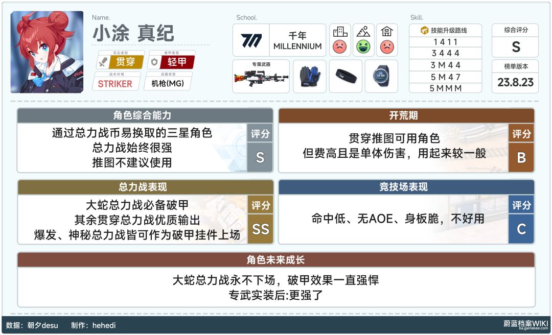 2.补充说明:水梓虽然图片上推荐被动和辅助最好同时升,但个人还是觉得资源不够,真要分个先后的话,辅助技能最好先升,毕竟加破甲优先!到时候可以跨属性去大蛇执法,而且不要犹豫,直接五星拉满!母猪石囤那么久,不就是为了这些人权限定嘛