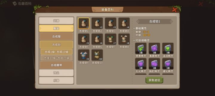 那么每个装备不仅有等级限制,还有独特的合成方式