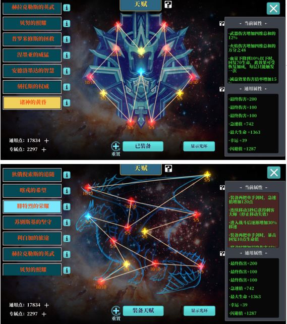 诸神天赋伤害更高、双刀天赋跑得快还有暴击回血自行选择,其他不考虑;