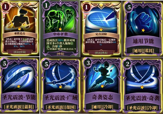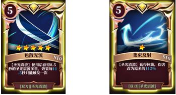 【光轮流转】---核心卡,唯一一张必须5星的卡牌,只有5星才能让减CD效果永久持续,叠满后1.2秒一个技能。【色散光流】---核心卡,增伤卡,贴脸释放技能时候有巨额伤害,第二张需要5星的卡。