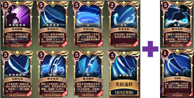 整个体系以【和光同尘】+【夜幕降临】+【圣光震波】技能输出为主;